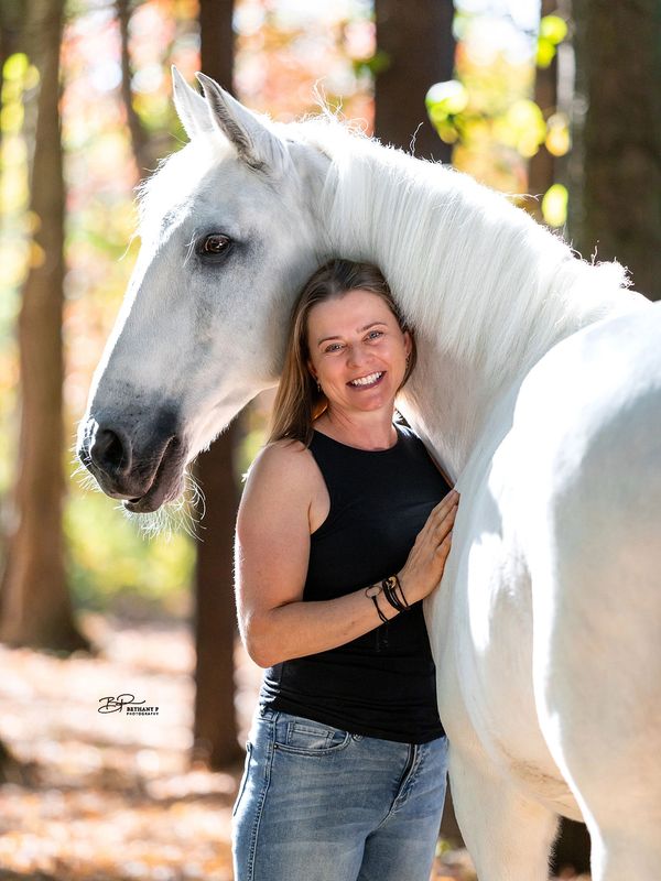 Kate Poulin has lived a life shaped by horses. Raised on a working farm in Maine with parents Michael and Sharon Poulin — both respected trainers, competitors, instructors, and judges — Kate learned early the values of hard work, horsemanship, and dedication. Her childhood was filled with ponies, school horses, and local shows, building a foundation in showmanship, equitation, jumping, and dressage. Over the years, Kate developed deep expertise in every aspect of the equestrian world: stable management, farm maintenance, veterinary and farrier care, breeding, and the classical principles of dressage that guide her work today.